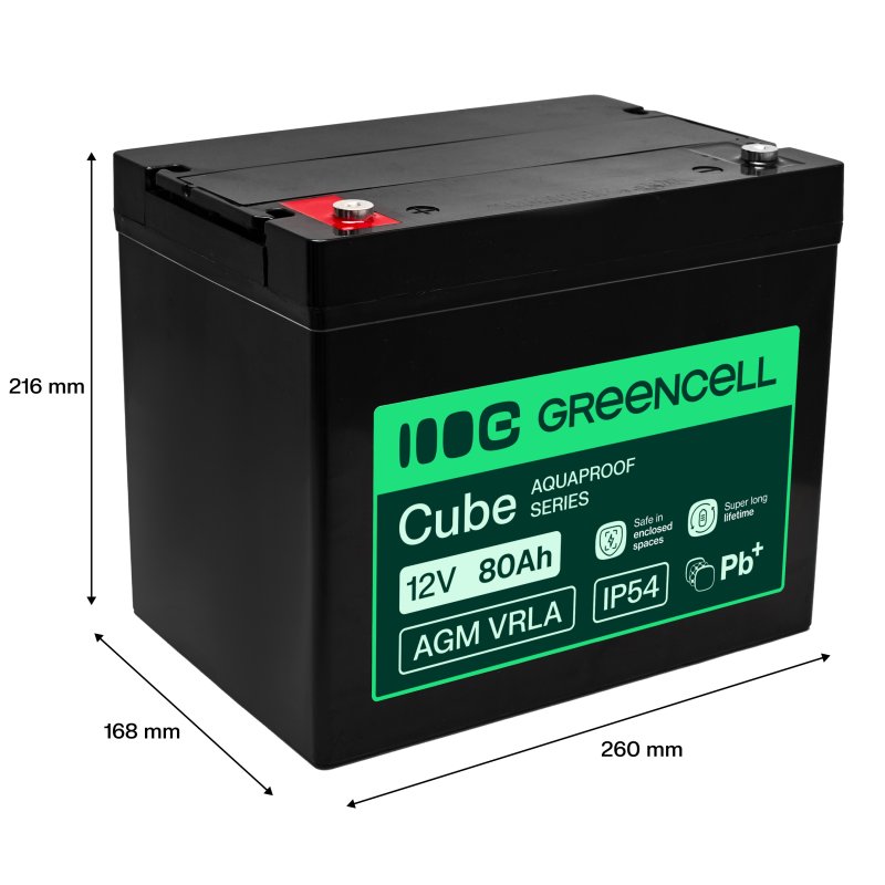 Batéria AGM Cube IP54 od Greencell zaručuje spoľahlivý výkon aj v najnáročnejších podmienkach. Je vyrobená z extrémne odolného a vodotesného puzdra, ktoré chráni vnútorné komponenty batérie pred nárazmi, otrasmi, prachom a vodou.