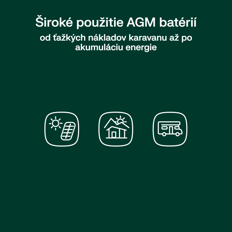 AGM (Absorbent Glass Mat) je technológia, pri ktorej je elektrolyt s vysokou energetickou hustotou integrovaný do sklenených vlákien, čo zabraňuje jeho úniku. Vďaka tomu môže AGM batéria fungovať v akejkoľvek polohe, čím sa stáva vynikajúcou a bezpečnou alternatívou ku klasickým oloveným batériám.