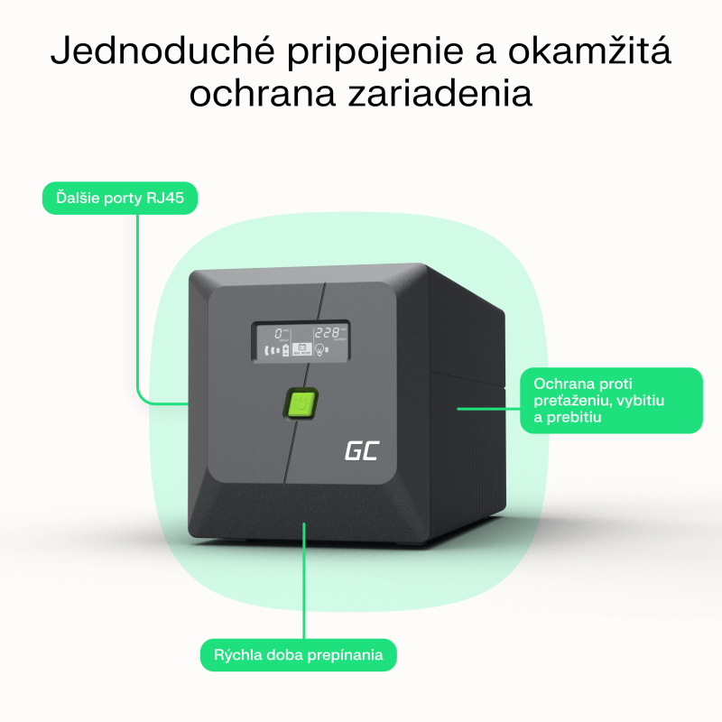 • Zdroje napájania UPS Greencell chránia zariadenia pred výpadkami energie, stratou dát a skokmi napätia.
