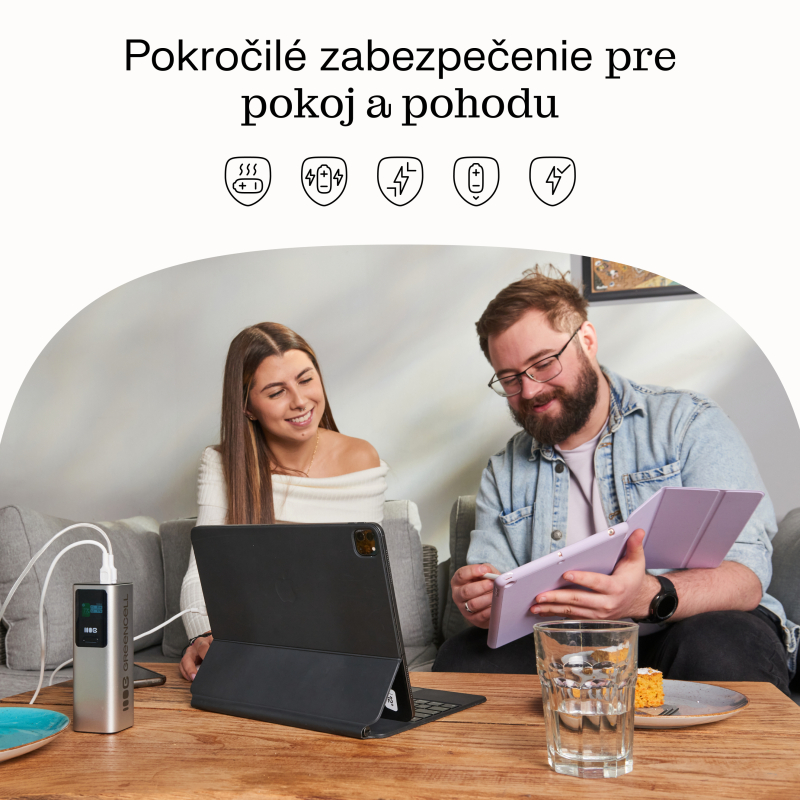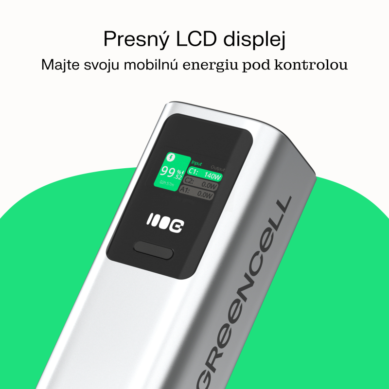 • Úplná kontrola s čitateľným LCD displejom– vďaka vstavanému displeju môžete sledovať úroveň nabitia, aktuálne zaťaženie, počet cyklov, teplotu zariadenia a reálnu kapacitu powerbanky.
