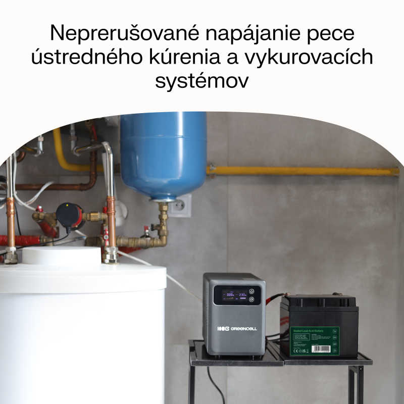 Funguje s externou AGM batériou, ktorej kapacitu si môžete zvoliť podľa vlastných potrieb. Na rozdiel od iných modelov GreenCell UPS nemá vstavanú batériu.